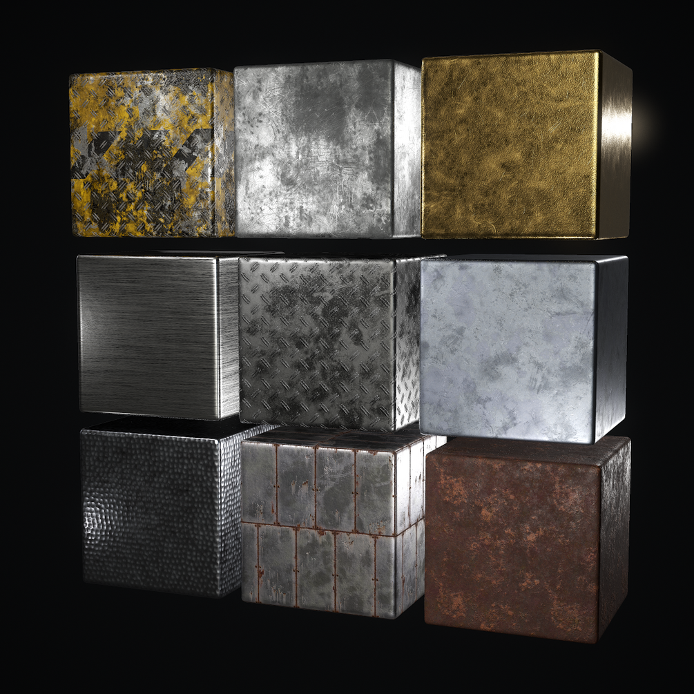 Metal Substance Collection with 12 unique metal style substances with both .sbs and .sbsar formats. Completely procedural resolution independent substances.